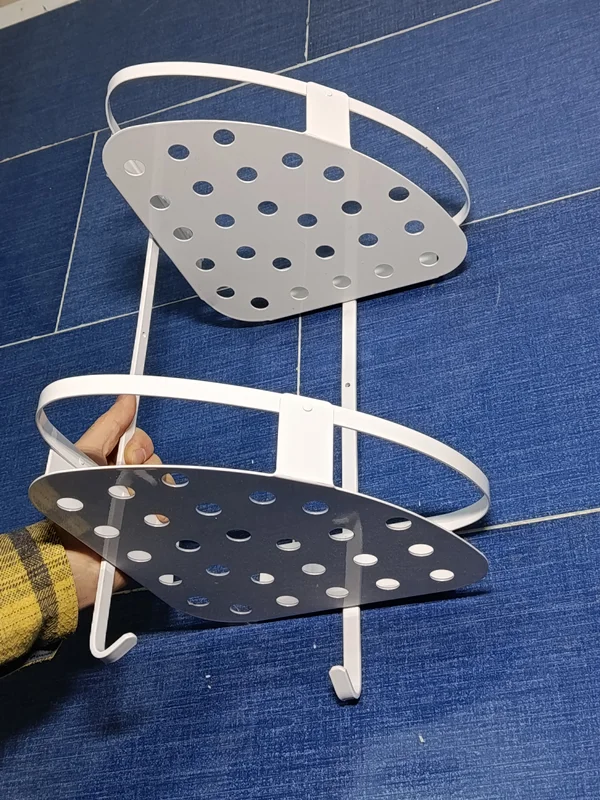 قفسه دو طبقه حمام تمام آلومینیوم و رنگ کوره ای تولید شده است.فاصله بین طبقات به گونه ای طراحی شده تا تمام مدل شامپو را در خود جای دهد
